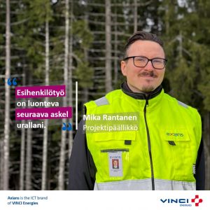 Projektipäällikön työssä Mika kuvaa itseään ennen kaikkea “kokonaisuuksien mahdollistajaksi”. Hänen vastuullaan on varmistaa, että projekti etenee suunnitelmallisesti, oikeat ihmiset pääsevät tekemään oman työnsä ja että päätöksenteko, tiedonkulku sekä arjen koordinointi toimivat. Käytännössä tämä tarkoittaa oman projektisalkun hallintaa alusta loppuun. Projektit budjetoidaan, toteumaa seurataan ja taloudellisesta onnistumisesta kannetaan vastuu. Axiansilla projektipäällikön työssä hallinnoidaan isoja kokonaisuuksia ja projektipäällikkö vastaa nimettyjen projektien läpiviennistä alusta loppuun. Tämä on VINCI Energies -konsernin maailmanlaajuinen malli hallinnoida projekteja.